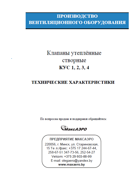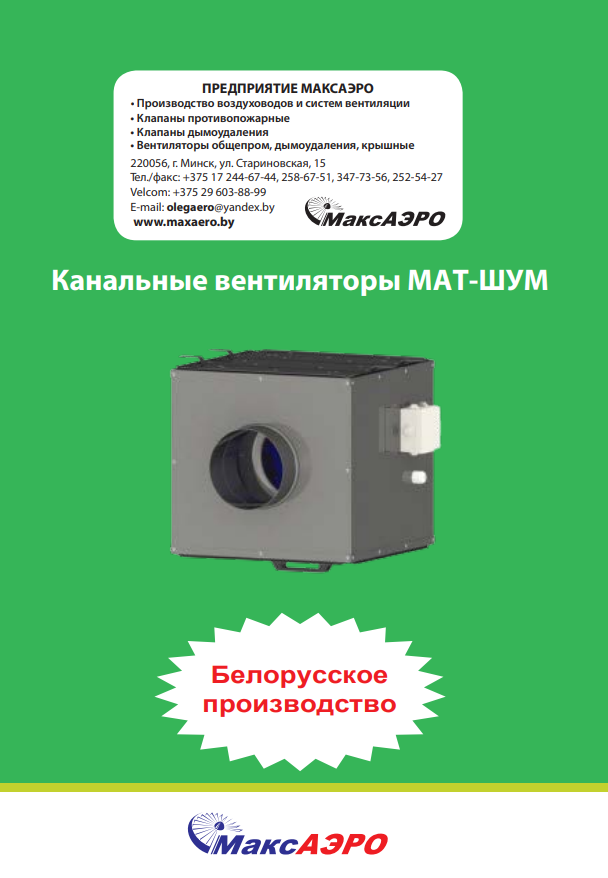 Каталоги на вентиляционное оборудование собственного производства (Республика Беларусь)