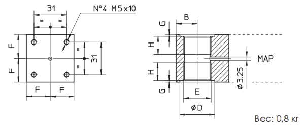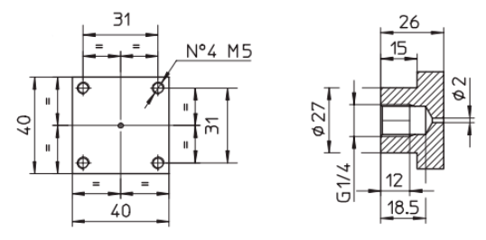 Параметры стыковочной поверхности | Шероховатость Ra 0.4, неплоскостность 0.01/100 (ISO 1101) |