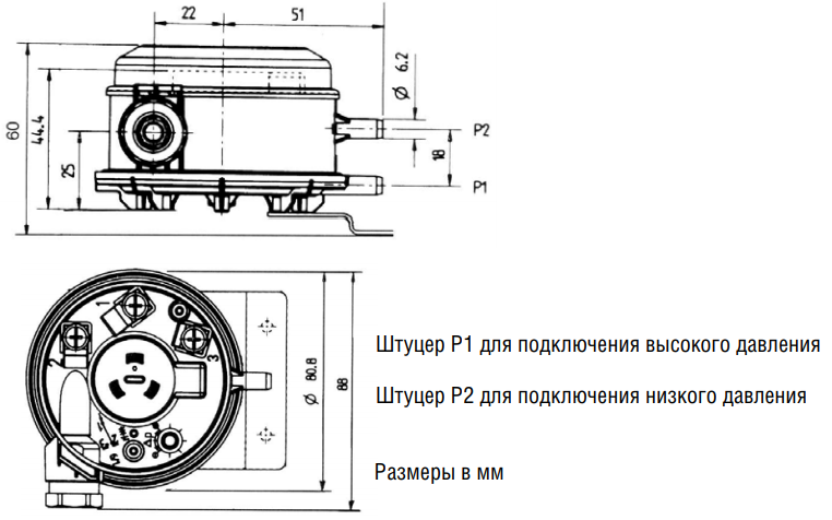 Дифференциальный датчик- реле давления воздуха состоит из стеклопластикового поликарбонатного корпуса и силиконовой мембраны.