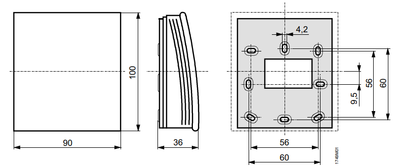 Габаритные размеры датчика температуры Siemens QAA2061D