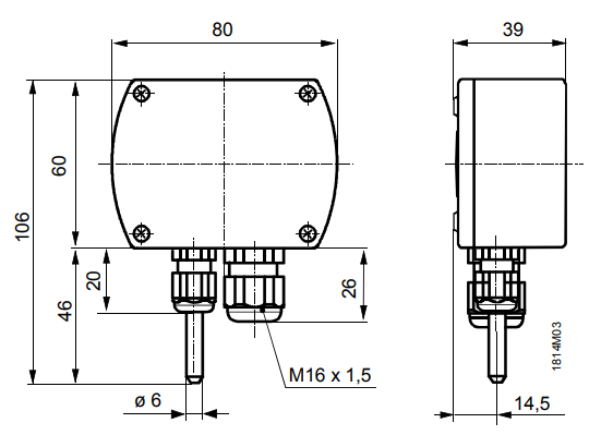 Габаритные размеры датчика температуры Siemens QAC3171