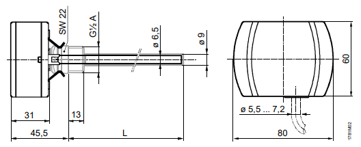 Датчик должен быть смонтирован таким образом, чтобы ввод кабеля НЕ располагался сверху. Для всех типов датчиков длина погружения должна составлять минимум 60 мм! Датчик не должен закрываться крышкой. Для установки датчика в трубу должен быть вварен резьбовой фитинг либо тройник с резьбой G ½.