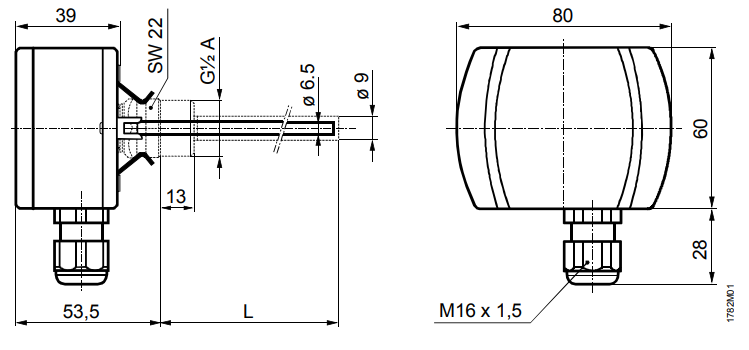 Доступ к клеммам для подключения возможен после снятия крышки. Кабельный ввод выполнен сальником M16 (IP 54), который вкручивается в корпус. Измерительный щуп жестко закреплен на корпусе.