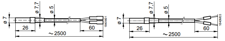 Датчик состоит из двухпроводного кабеля с чувствительным элементом NTC и разъемов. Монтажный комплект для переключающих датчиков служит для установки датчиков на трубопроводы (диам. 12...16 мм).
