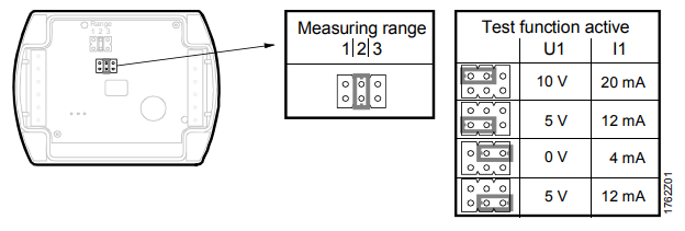 Блок переключателей состоит из 6 штырьков и перемычки. Он служит для выбора диапазона измерений и для активизации функции тестирования.