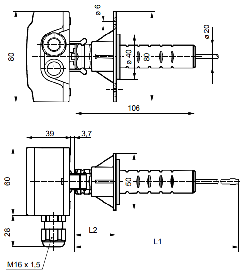 Датчик температуры Siemens QAM2171.040 предназначен для использования в вентиляционных установках и установках кондиционирования воздуха в качестве: