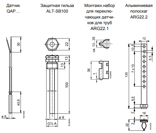 Габаритные размеры датчика температуры Siemens QAP2010.150