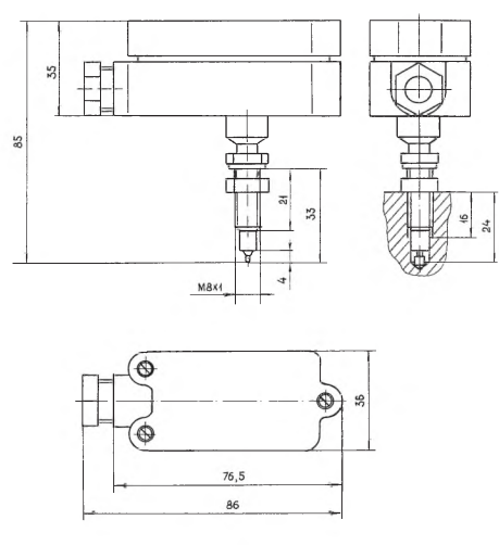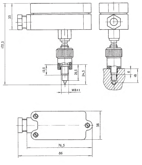 Монтируется реле РТ-303 и РТ-303-1 в корпусе подшипникового узла насосного агрегата в гнездо глубиной 24 или 18 мм с присоединительной резьбой М8х1.