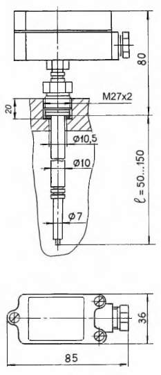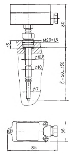 Реле РТ-303-2, РТ-303-3 монтируется на корпусе аппарата для контроля температуры технологических сред под давлением до 6,0 МПа. Длина погружной части термобаллона: от 50 до 150 мм.