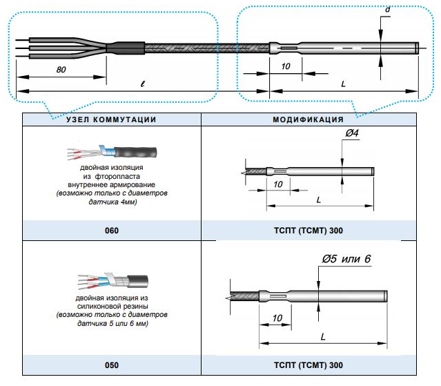Тип датчика | ТСМТ-300 | Термометр сопротивления медный ТСМТ-300-050/060 с кабельным выводом | |
