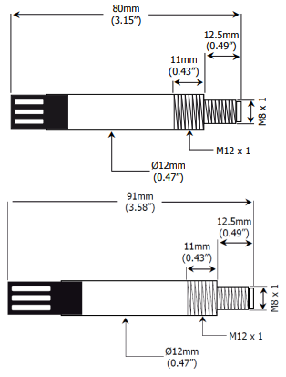 Размеры | L=80мм, ø12мм (L=3.15”, ø0.47”) |