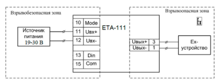 Модели ЕТА-111 и ЕТА-112 содержат один или два канала, обеспечивающих гальваническую развязку выходного напряжения питания от входного. Степень защиты выхода соответствует [Ex ia Ga] IIC X.