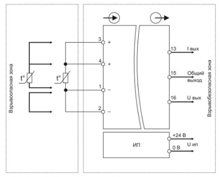 Вход преобразователя имеет взрывозащиту [Ex ia Ga] IIC и поддерживает измерение сигналов термопреобразователей сопротивления ТСМ, ТСП, ТСН (50М, 100М, 50П, 100П, Pt50, Pt100).