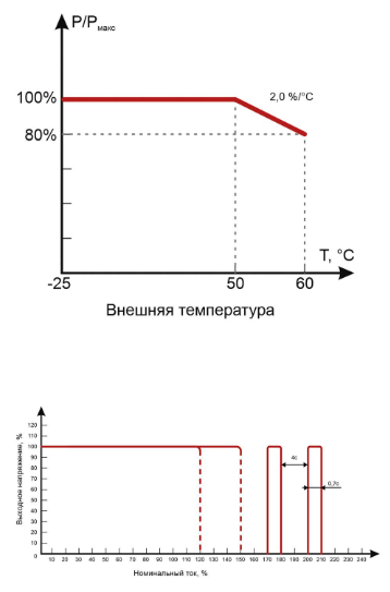 Снижение мощности | Линейно снижается на 2,0% / °С при температуре свыше 50 °С |