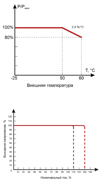Снижение мощности | Линейно снижается на 2,0% / °С при температуре свыше 50 °С |