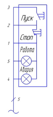 Устройство оснащено двумя кнопками (зелёной и красной) и двумя световыми индикаторами соответствующих цветов. Каждый элемент снабжён обозначениями функций: ПУСК, СТОП, РАБОТА и АВАРИЯ.