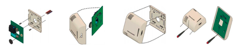 Прибор крепится на ровную поверхность/стену. Монтажная консоль крепиться на винты нужного диаметра в зависимости от выбранного материала (монтажный короб или стена).