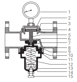 Если входное давление становится выше установленного, то клапан начинает открываться, увеличивая расход, тем самым уменьшая его давление на входе.