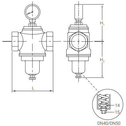 Модель | DN, мм | G, размер | L, мм | H1, мм | H2, мм |