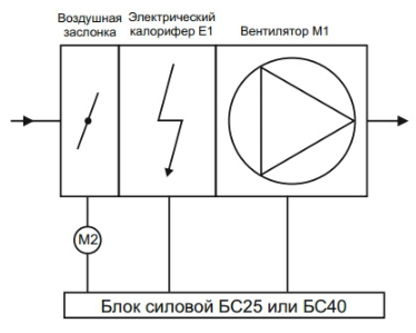 Силовые блоки ЩУ-БС25 и ЩУ-БС40 предназначены для управления вентилятором и электрическим калорифером в приточных системах вентиляции.
