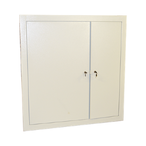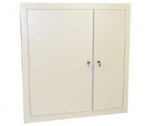 Встраиваемый в нишу этажный щит представляет собой металлический каркас, имеющий с лицевой стороны обрамление ниши и дверь или двери отсеков. Крепление щита в нише осуществляется при помощи распорных болтов.