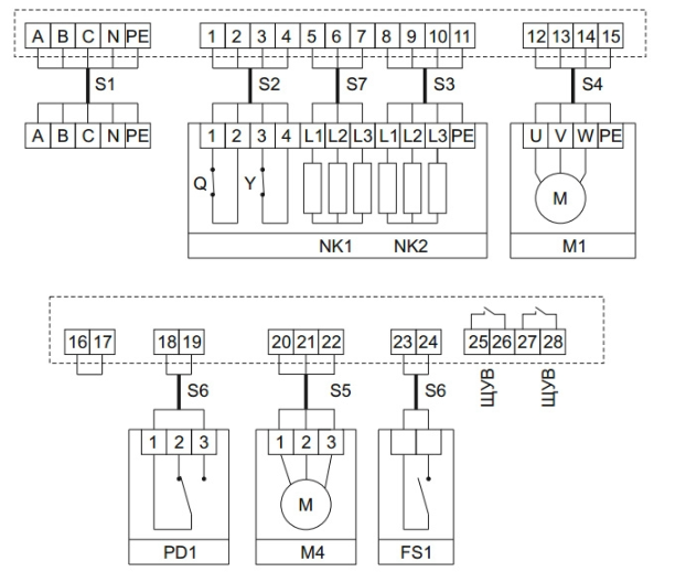 Схема подключения ЩУ5-1,5-30, ЩУ5-1,5-36, ЩУ5-2,2-42 и ЩУ5-2,2-48