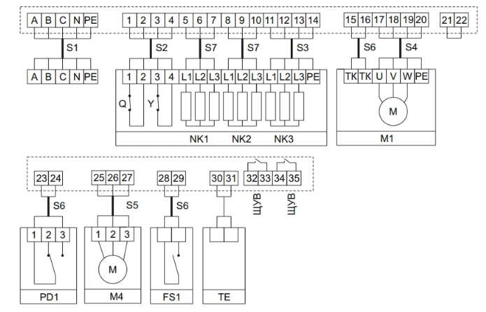 Схема подключения ЩУ7-2,2-30,0; ЩУ7-4,0-60; ЩУ7-4,0-72,0