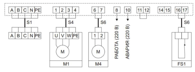 - М1 - вентилятор, питание 380 В;