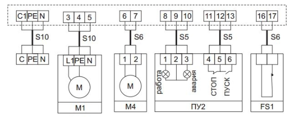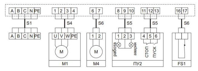 Схема подключения ЩУВ3, пуск/стоп вентилятора с пульта управления ПУ2