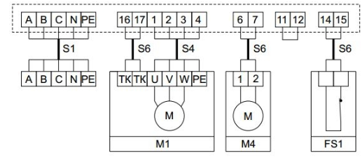 - При нажатии в щите кнопки ПУСК на вентилятор М1 подается питание 380 В.
