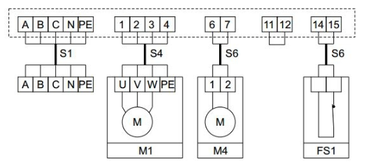 - М1 - вентилятор, питание 380 В;