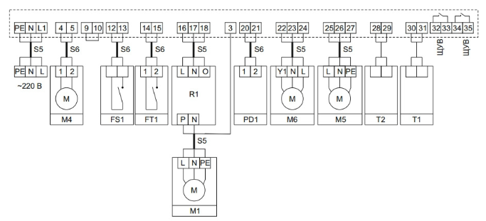 - М5 - циркуляционный насос на 220 В/ 6 A;