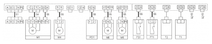 - М1 - канальный вентилятор на 220 В, встроенные термоконтакты;