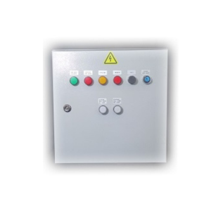 На двери шкафа присутствует световая индикация о наличии питания\неисправности питания, поступлении сигнала «ПОЖАР» от прибора пожарного управления(ППУ), сигнализация об отключении автоматического режима управления «АВТ. ОТКЛ.», поступлении сигнала «НЕИСПРАВНОСТЬ» от внешнего АВР, либо при обнаружении автоматикой неисправности работы шкафа, а также о состоянии противопожарных клапанов -«ОТКРЫТ», или «ЗАКРЫТ».
