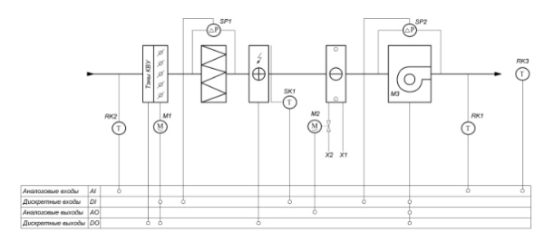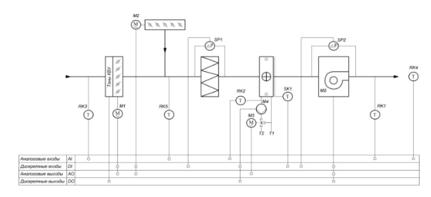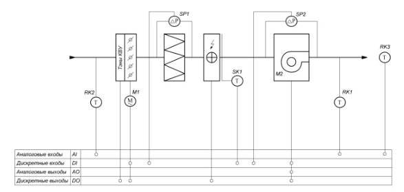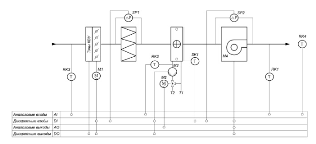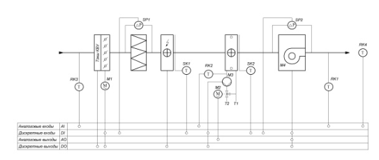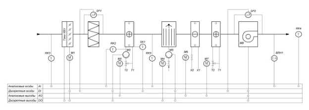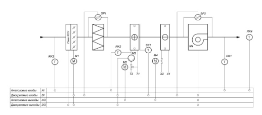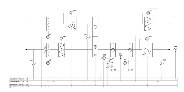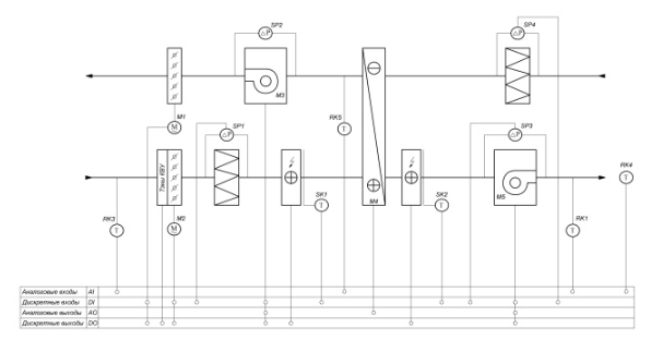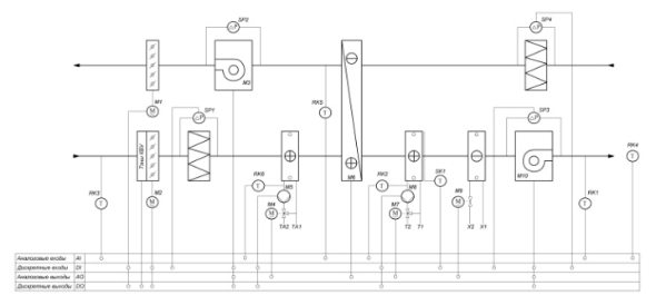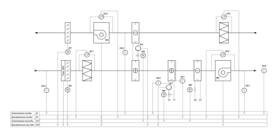 Система автоматики с пластинчатым теплоутилизатором и двухступенчатым водяным нагревателем и водяным охладителем СА-6