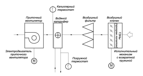 Система автоматики с водяным калорифером и рециркуляцией СА-2