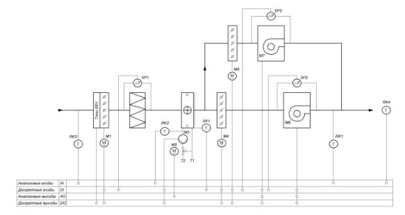 - Управление частотой вращения вентиляторов через преобразователь частоты