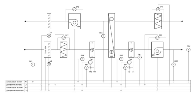 Система автоматики с роторным теплоутилизатором, водяным нагревателем и водяным охладителем СА-8