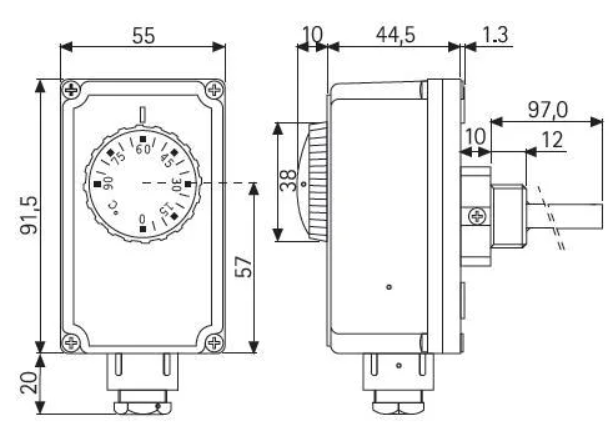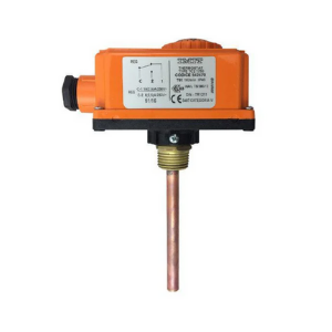 Термостат однополюсный с переключающими контактами в защитном корпусе. Обычно устанавливается в подводящих трубопроводах и особенно подходит для автоматического регулирования котельных, насосов и других установок.