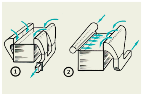 - Сложные — имеют разнообразную геометрию, включая отверстия для всасывания загрязненного воздуха и продухи для подачи свежего воздуха.
