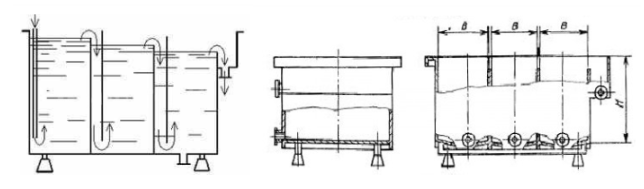 Многокамерные емкости. Более сложные элементы, используются для качественной промывки деталей до и после покрытия. Имеют несколько видов.