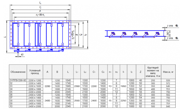 Клапаны пылегазовоздухопроводов прямоугольные 5-осные