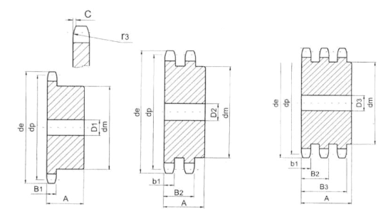 - Исполнения ступицы: В наличии однорядные, двухрядные и трёхрядные звёздочки, что расширяет возможности их применения.
