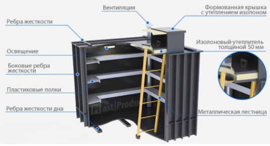 - Погреб произведен из пищевого пластика и экологически безопасен.