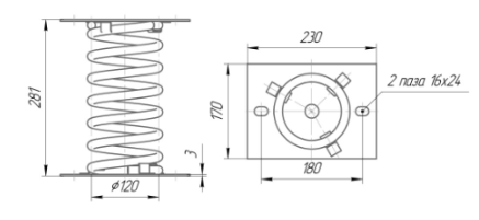 Конструкция пружинного виброизолятора включает в себя цилиндрическую пружину с жестко зафиксированными торцевыми пластинами. Изоляторы типов ДО и ВП рассчитаны на эксплуатацию при температуре до -40°C.