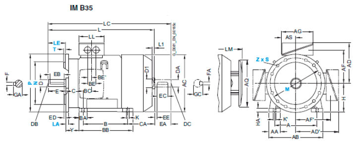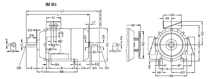 Типоразмер | Кол-во полюсов | HH | K | K' | L1 | L1 | D1 | LC | LL | LM | D | DB |