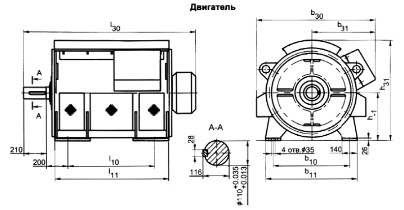 Tип двигателя | b10 | b11 | b30 | b31 | l10 | l11 | l30 | h | h31 | Масса, кг |