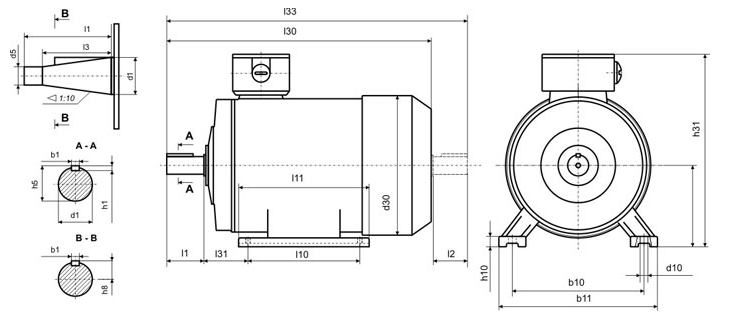 Крановые электродвигатели 4 габарита и выше, а также с высотой оси вращения 200 и выше как правило выполняются с коническими концами вала.