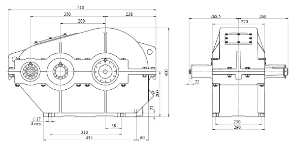 Двухступенчатый цилиндрический горизонтальный редуктор РМ-350 — это надежная и проверенная временем модель, разработанная в СССР, которая до сих пор активно используется в различных отраслях промышленности. Благодаря компактным габаритам и массе 150 кг он успешно применяется в приводах грузоподъемных кранов, горнодобывающего оборудования, ленточных конвейеров, лебедок и других механизмов.