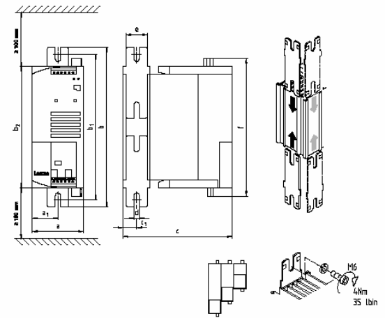 - «push-through technology» - преобразователь Lenze 8200 монтируется в шкафу управления таким образом, что радиатор инвертора находится снаружи, что позволяет исключить выделение тепла внутрь шкафа (поставляется под «заказ»).